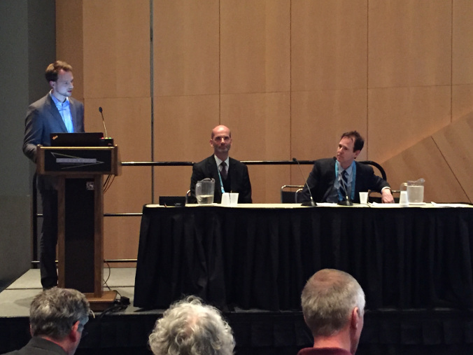 Prof. Bernd J. Krause u. Dr. Martin G. Pomper (Baltimore/Maryland) bei der Moderation der Session „PSMA: A Game Changer in Prostate Cancer Diagnostics and Therapy?”. Am Rednerpult: Dr. Wolfgang Fendler (München). 1)